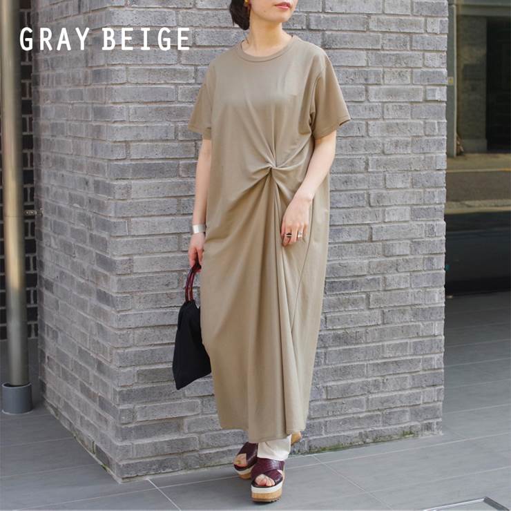 【ツイストデザイン半袖ワンピース】フロントのツイストデザインがポイントの個性派ワンピース。