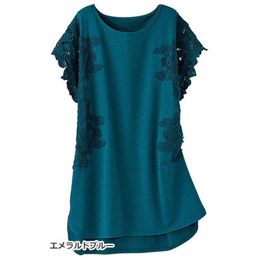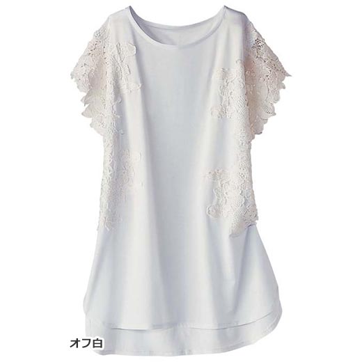 ■手押し洗い【肌ざわりヒンヤリ快適】華やか袖レース着映えプルオーバー涼しい接触冷感の素材を使用したプルオ ーバー。
