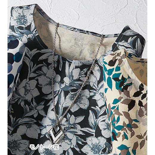 ■洗濯機洗いOK夏のお出かけを彩る涼しげな華やぎ夏らしいプリントや優美なレース使いで一枚でも着映えるプルオーバー。